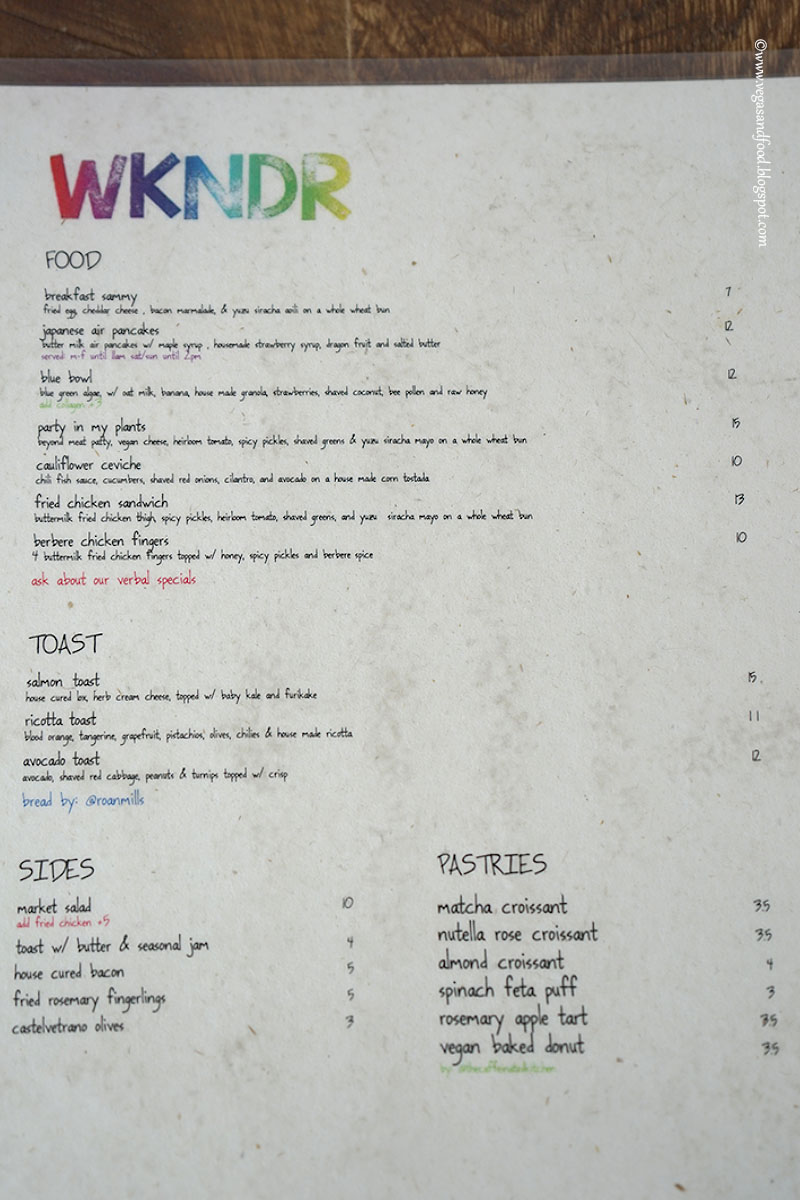 WKNDR is newest spot in Los Feliz. This place is very tiny. It's perfect spot to stop by alone and have quick brunch. I saw many people just come here to order drinks to go.